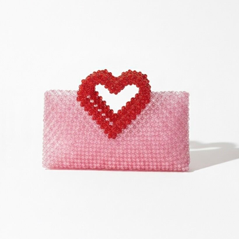 ハートモチーフが印象的なクラッチバッグ。